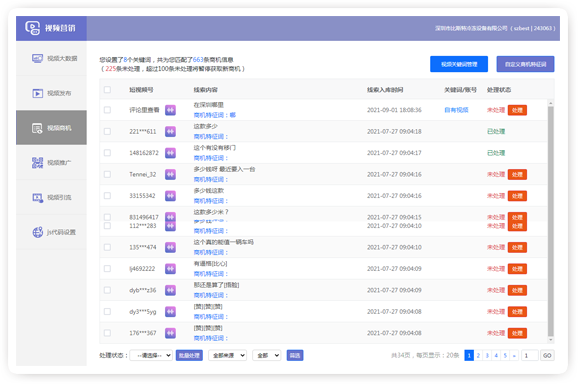 通过关键词和视频号定位,定 期全网挖掘有价值的商机线索, 实现精准线索拓客;